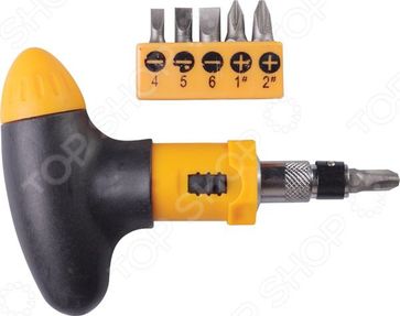 Отвертка с набором бит B10 90383 представляет собой ручной слесарный инструмент, используемый для завинчивания и отвинчивания крепежных деталей; подходит для работы с прямыми и крестообразными шлицами РН . Инструмент незаменим для выполнения монтажных и демонтажных работ у вас дома, на даче, в гараже и т.д. Отвертка снабжена реверсивным храповиком с фиксирующим механизмом и эргономичной Т-образной рукояткой, обеспечивающей надежный и удобный захват инструмента во время работы. None Возможен самовывоз. Есть доставка.