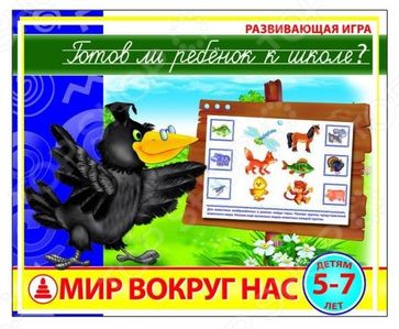 Игра настольная обучающая Радуга Готов ли ребенок к школе Мир вокруг нас отличная развивающая игра для детей в возрасте от 5 до 7 лет. Основная идея в том, что малыш должен выполнить то или иное, прописанное в карточке, задание найти пары животных, вспомнить персонажи сказок, рассказать о профессиях и др . Игра рассчитана на 1-3 человек. Длительность одной игры составляет 15-30 минут. None Возможен самовывоз. Есть доставка.