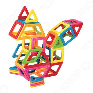Конструктор магнитный Magformers My First Magformers 54 открывает безграничные возможности для создания уникальных игрушек из базового набора деталей. Элементы конструктора представлены цветными геометрическими фигурами разных цветов и специфическими детальками, имеющими намагниченную поверхность. Эта особенность открывает невероятные возможности по соединению и общей сборке, что позволяет составлять каждый раз новые объекты, непохожие на конструкции из традиционных блоков с пазами и прочими классическими видами креплений. Продукция торговой марки Magformers уже успела полюбиться тысячами детей и взрослых за счет своих уникальных свойств: Конструктор подойдет для детей всех возрастов, взрослые также оценят всю увлекательность конструирования с Magformers. Даже малыши до 3 лет могут играть и развиваться с его помощью, но только под присмотром родителей. Возможности создания объектов ограничены только воображением. Собирайте различную фантастическую технику, роботов, сказочных персонажей, зверюшек и многое другое. Для начала можно воспользоваться стандартной инструкцией с готовыми идеями кстати, на официальном сайте производителя постоянно обновляются графические и видеоинструкции . Однако стоит дать волю фантазии и остановить поток идей будет невозможно. Магнитные детали конструкторов Magformers совместимы между собой, поэтому со временем вы можете покупать другие наборы и собирать еще больше оригинальных игрушек. Концепция Играй и учись позволяет обучать детей младшего возраста. В результате Magformers подойдет не только для дома, но и для образовательных учреждений детские сады, школы, творческие кружки . Яркие детальки помогут объяснить понятие размера и формы, развить мышление и логику, пространственное воображение и моторику рук. Сборка конструктора подарит мальчишкам и девчонкам массу удовольствия и приятное времяпрепровождение. Набор Magformers My First 54 содержит 54 элемента. В первую очередь этот конструктор рассчитан на малышей, однако он также может б