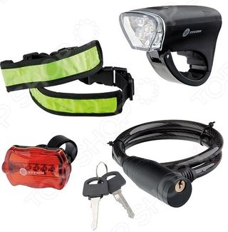 Набор аксессуаров для велосипеда Stern 90561 представлен пятью предметами передний и задний LED-фонари, светоотражающие элементы и тросовый замок. Фонари и светоотражатели помогут водителю во время езды в темное время суток и обозначат его как участника движения. Тросовый замок обеспечивает сохранность транспортного средства, пока владельца нет рядом. Этот небольшой набор сделает поездку на велосипеде максимально безопасной, комфортной и надежной. Передний фонарь 104х66х38 мм. Задний фонарь 68х38х48 мм. Лента 330х32. Трос: длина 685 мм, диаметр 9,5 мм. None Возможен самовывоз. Есть доставка.