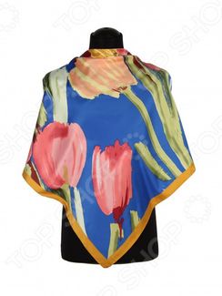 Женский платок стильный, красивый и практичный аксессуар в женском гардеробе, без которого не может обойтись ни одна модница! Мода на него исчисляется целыми десятилетиями, поэтому не удивительно, что он стал одним из самых любимых аксессуаров представительниц прекрасного пола. Разные по фактуре, материалу и расцветке, платки и платочки идеально вписываются в совершенно любой образ от строго делового до озорного стиля гранж. Этот простой аксессуар способен придать образу новый оттенок, расставить правильные акценты или связать все воедино. Стильный аксессуар для незабываемого образа Платок Bona Ventura PL.L-SLK.T.11 яркий и стильный аксессуар, который отлично дополнит ваш стиль! Платок выполнен из легкого материала, который на 100 состоит из шелка. Тонкий, шелковистый материал прекрасно пропускает воздух и не парит, поэтому такой аксессуар можно носить как в прохладное время года, так и более теплое. Необычный дизайн с ярким, насыщенным рисунком крупных тюльпанов в акварельной тематике делает этот аксессуар вполне самодостаточным, поэтому вам остается только выбрать неброские аксессуары. Легко меняется вместе с вами! Платок от торговой марки Bona Ventura аксессуар универсальный, а множество существующих вариаций как его завязать позволяют легко адаптировать к любому выбранному вами наряду: повседневному, деловому или более торжественному. Сложите платок по середине, лицевой стороной внутрь, и свяжите концы попарно простым узлом. Выверните платок и накиньте на плечи, продев руки в отверстия. Так вы получаете простое и красивое болеро, которые будет отлично сочетаться с одеждой с открытии плечами или спиной. Сложите платок треугольником и набросьте его сзади на плечи. Теперь у вас есть легкая, невесомая накидка! Идеальный выбор на каждый день и под любой наряд. Сложите платок треугольником, накиньте на плечи и завяжите так, чтобы узел покоился на одном плече, а широкая часть на другом. Платок превратится в красивый аксессуар, который идеально дополнит ваш деловой
