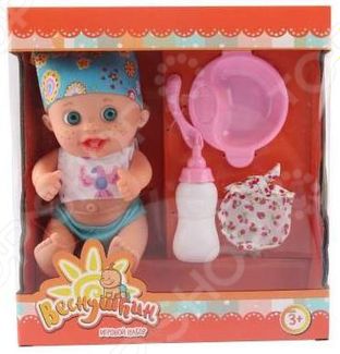 Пупс с аксессуарами 1 Toy Веснушкин веснушчатый пупсик-озорник с бутылочкой, ложечкой для кормления, тарелочкой и слюнявчиком. Пупс очень похож на настоящего младенца, благодаря чему игра в дочки-матери становиться максимально реалистичной. Игрушка отлично подходит для сюжетно-ролевых игр, которые способствуют развитию воображения, абстрактного мышления, а так же помогают ребенку освоить мир человеческих отношений. Преимущества: Плотный и приятный на ощупь. У пупса ручки и ножки подвижны для активных игр, а глазки не закрываются. Его удобно держать и носить на руках. Можно надевать слюнявчик и кормить его из ложечки или давать бутылочку. Можно купать. Игрушка изготовлена из высококачественных экологически чистых материалов, абсолютно безопасных для ребенка. None Возможен самовывоз. Есть доставка.