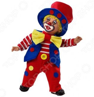 Кукла Arias Клоун станет замечательным элементом декора. Данная модель отличается детализованностью и привлечет внимание вашего малыша. Смешной клоун одет в сочный костюм: красные брюки, полосатый лонгслив, большой желтый бант и шикарную шляпу с круглыми краями. Клоун размером 38 см выполнен из высококачественного винила. На лице изображен шаловливый грим, а из под шляпки виднеются желтые волосы. Замечательный клоун, который не даст вам грустить! Яркий разноцветный текстиль высокого качества, продуманный до мелочей дизайн, винил, стойкие яркие красители все это делает игрушку необыкновенно привлекательной и достойной внимания. Кукла Клоун является мягконабивной, внутри ее туловища есть специальный наполнитель. Одежда игрушечного клоуна украшена разноцветными пуговицами и большим утрированным бантом, а на ногах у него надеты забавные башмачки. Игрушку приятно брать в руки и держать. Такая кукла-клоун превратит обычные будни в яркий праздник. Отличная развивающая кукла поднимет настроение вашему ребенку. None Возможен самовывоз. Есть доставка.