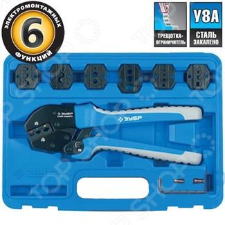 Кримпер с матрицами для различных кабельных наконечников Зубр Эксперт Супер-Коннект 22677-H9 - предназначен для проведения электромонтажных работ, обеспечивает надежное и долговечное соединение. Профессиональные инструменты, входящие в набор, выполнены из стали У8А, дополнительно закалены, прошли прецизионную обработку. Рычажная конструкция кримпера обеспечивает комфортный обжим наконечников. Набор размещается в специальном кейсе, в котором удобно хранить и транспортировать инструменты. None Возможен самовывоз. Есть доставка.