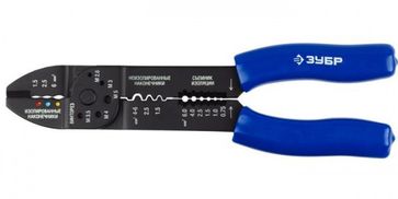 Пассатижи для электрика Зубр Эксперт 22668-23 многофункциональный инструмент, применяемый для снятия изоляции, зачистки кабелей и прочих работ с электрическими проводами. Губки пассатижей выполнены из инструментальной стали и дополнительно закалены для обеспечения более высокого рабочего ресурса. Инструмент снабжен съемником изоляции 0,75-6 мм , кусачками для кабелей, винторезом для латунных болтов и кримперами для обжима изолированных и неизолированных наконечников. None Возможен самовывоз. Есть доставка.