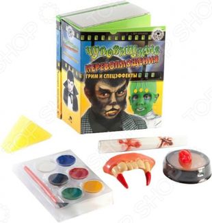 Набор грима и спецэффектов Новый формат Чудовищные перевоплощения станет отличным подарком для маленьких любителей страшилок и даст им возможность самостоятельно перевоплотиться в героев ужастиков. В комплекте есть все необходимое для создания устрашающего грима: краски для лица, кисточка, спонж, тушь для нанесения временных тату, фальшивая кожа, капсула с искусственной кровью и зубы вампира. Подробные инструкции и иллюстрации вы найдете в книге. None Возможен самовывоз. Есть доставка.