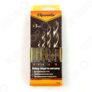 Набор сверл по металлу SPARTA 723105 функциональный набор, который используется при осуществлении строительных и ремонтных работ любых масштабов. Набор изготовлен из высококачественной быстрорежущей стали марки HSS, которая характеризуется своей долговечностью. Оксидированная поверхность рабочей части обеспечивает её повышенную твердость и уменьшает коэффициент трения, что обеспечивает прекрасные эксплуатационные характеристики. Она также увеличивает стойкость инструмента к механическим повреждениям и истиранию. Это также позволяет делать ровные и точные отверстия в заготовках из простого и цветного металла. Каждое сверло оснащено цилиндрическим хвостовиком В набор входят сверла самых ходовых размеров: 4, 5, 6, 8, 10 мм. Удобная пластиковая кассета-пенал имеет деления специально предназначенные для каждого инструмента. None Возможен самовывоз. Есть доставка.