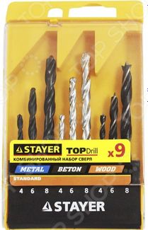 Набор сверл комбинированных Stayer Standard 29720-H9 состоит из 9 предметов, среди которых имеются сверла по металлу, дереву и бетону. Благодаря данному комплекту, вы сможете легко и быстро просверлить отверстия необходимого диаметра как в металлических деталях и заготовках, так и в разнообразных деревянных и бетонных конструкциях при помощи электродрели. Оптимальная комплектация и проверенное временем качество инструмента удовлетворят потребности даже профессионала. В комплекте сверла размерами: по металлу, 3 шт.: 4, 6, 8 мм; по дереву, 3 шт.: 4, 6, 8 мм; по бетону, 3 шт.: 4, 6, 8 мм. Набор поставляется в пластиковом боксе. None Возможен самовывоз. Есть доставка.