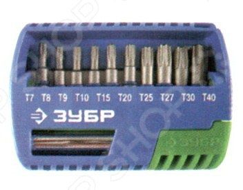 Набор бит Зубр Эксперт 26053-H11 предназначена для проведения монтажных, слесарных, крепежных или ремонтных работ с резьбовыми соединениями, имеющими рабочие профили TORX. Оптимальная комплектация, проверенное временем качество инструмента удовлетворит потребности не только любителя, но и профессионала. Насадки для инструмента изготовлены из хромомолибденовой стали S2. Они покрыты специальным износостойким и антикоррозийным слоем, а также прошли термообработку и холодную ковку, поэтому прослужат долго. Торсионная зона предохраняет от разрушения наконечник при пиковых нагрузках. Имеется магнитный адаптер. В набор входят биты: TORX 7, 8, 9, 10, 15, 20, 25, 27, 30, 40. None Возможен самовывоз. Есть доставка.