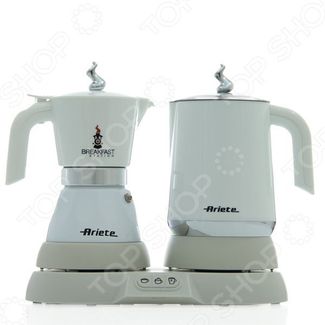 Что может лучше по утрам, чем ароматный кофе или насыщенный черный чай Неповторимый вкус этих напитков бодрит и настраивает на продуктивный рабочий день. А приготовить их быстро и вкусно поможет набор для приготовления кофе и чая Ariete 1344. Комплект представлен гейзерной кофеваркой и чайником предметы расположены на компактной беспроводной базе. Чайник можно использовать для кипячения воды или взбивания горячего холодного молока для капучино. Набор может работать одновременно в режиме кофеварки и чайника вспенивателя молока. Если вы не используете прибор более 30 минут, он автоматически выключается для экономии электроэнергии. Идеальный вариант для приготовления разнообразных напитков на основе молока, кофе, чая и шоколада. Как пользоваться гейзерной кофеваркой Открутите верхнюю часть емкости от основания и извлеките фильтр. Заполните нижнюю емкость водой до указанной метки на корпусе. В верхнюю часть кофеварки насыпьте нужное количество молотого кофе, не утрамбовывая его. Емкость должна быть полностью заполнена кофе. Закрепите верхнюю и нижнюю части, плотно закрутив. Поставьте кофеварку на станцию. Как только вы услышите шипение напиток готов. Не стоит доводить его до кипения, чтобы не ухудшить вкусовые качества. Для приготовления необходимо использовать молотый кофе, что очень выгодно он самый доступный по стоимости и отличается огромным разнообразием вкусов. Вам остается лишь экспериментировать со смешением разных сортов кофе, чтобы добиться идеального вкуса и запаха. А кофеварка сделает всю сложную работу быстро и качественно, дав вам возможность насладиться ароматным напитком и получить заряд бодрости на весь день. Кофеварка рассчитана на приготовление 2-4 чашек. Для первого варианта необходим меньший объем воды. Перед приготовлением установите в фильтр специальный укомплектованный диск. Преимущества чайника-капучинатора Возможность выбора температуры нагрева чайника 80-100 градусов. 80 градусов оптимально для заваривания зеленого чая, а 100 граду