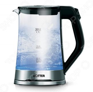 Чайник HOTTER HX-590 удивительно практичная модель, которая отличается своими хорошими эксплуатационными качествами и современным дизайном. Корпус чайника выполнен из термостойкого закаленного стекла. Этот материал не теряет свои прекрасные эксплуатационные характеристики, не выделяет вредных веществ, кислот и солей, а также сохраняет полезные свойства и природный вкус воды. Чайник имеет скрытый нагревательный элемент, что является его неоспоримым преимуществом. Подобная конструкция элемента не позволяет накипи повредить чайник. На приборе установлены индикаторы уровня воды для того, чтобы вы смогли контролировать объем нагреваемой воды. Беспроводное соединение обеспечивает вращение чайника на подставке на 360 . Оцените главные достоинства этой модели Удобная крышка с простым механизмом открытия. Эргономичная пластиковая ручка не нагревается. Пластиковые детали отличаются полным отсутствием неприятного запаха. Светодиодная подсветка голубого цвета при нагревании. Съемный фильтр от накипи для эффективной защиты от попадания накипи в чашку. Автоматическое отключение при закипании воды. Защита от перегрева. Легкий и удобный чайник станет незаменимой вещью на вашей кухне! None Возможен самовывоз. Есть доставка.