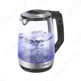 Чайник Marta MT-1095 удивительно практичная модель, которая отличается своими хорошими эксплуатационными качествами и современным дизайном. Корпус чайника выполнен из термостойкого закаленного стекла. Этот материал не теряет свои прекрасные эксплуатационные характеристики, не выделяет вредных веществ, кислот и солей, а также сохраняет полезные свойства и природный вкус воды. Чайник имеет скрытый нагревательный элемент, что является его неоспоримым преимуществом. Подобная конструкция элемента не позволяет накипи повредить чайник. На приборе установлены индикаторы уровня воды для того, чтобы вы смогли контролировать объем нагреваемой воды. Беспроводное соединение обеспечивает вращение чайника на подставке на 360 . Чайник можно поставить на базу с любой стороны без риска обжечься. Оцените главные достоинства этой модели Удобная крышка с простым механизмом открытия. Эргономичная пластиковая ручка не нагревается. Пластиковые детали отличаются полным отсутствием неприятного запаха. Встроенный фильтр от накипи для эффективной защиты от попадания осадка в чашку. Автоматическое отключение при закипании или недостаточном количестве воды обезопасит чайник от преждевременного выхода из строя. Внутренняя LED подсветка. Легкий и удобный чайник станет незаменимой вещью на вашей кухне! None Возможен самовывоз. Есть доставка.