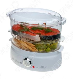 Пароварка Smile SC 1650 позволяет быстро приготовить несколько любимых блюд. Два яруса позволяют приготовить сразу два блюда одновременно. Так, на верхнем ярусе можно приготовить рис или овощи, тем временем когда на нижнем ярусе готовиться мясо. Конструкция пароварки не позволяет пересушить или передержать блюдо, что благотворно сказывается на качестве продуктов, их полезных свойствах. В общей сложности пароварка способна вместить до 5 литров. Так, вместительность каждой из паровых корзин составляет 2,5 л, чего вполне хватает для приготовления полноценного ужина на всю семью. Такая посуда идеально подойдет для тех кто следит за своей фигурой, ведь приготовление пищи с помощью пара сохраняет внешний вид и качество продуктов. Оцените главные достоинства данной модели 2 прозрачные чаши для варки на пару позволяют готовить 2 блюда одновременно. Пластиковый корпус обеспечивает простоту и удобство в использовании и уходе. Индикатор включения укажет на готовность устройства к работе. Благодаря тому, что паровые корзинки выполнены из прозрачного пластика, вы сможете контролировать процесс приготовления не открывая и не снимая крышек. Предусмотрен таймер на 60 минут с автоматическим отключением после окончания заданного времени. Надежная система защиты автоматически отключает прибор при отсутствии воды. Пароварка Smile SC 1650 дополнена отдельным лотком для приготовления риса, а также специальной чашей для яиц с углублениями. None Возможен самовывоз. Есть доставка.