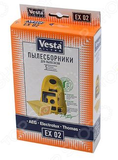Мешки для пыли Vesta EX 02 Electrolux комплект из пылесборников, которые отличаются большой вместимостью и повышенной износостойкостью. Мешки задерживают более 99 пыли, ведь они являются двухступенчатым фильтром. Двойная система фильтрации происходит следующим образом: вначале происходит мягкая система фильтрации, после чего поглощаются мельчайшие частицы пыли. Совместимы с пылесосами: Electrolux: Xio, Boss, Boss Plus, Mega Boss. AEG: Vampyrino 100-199, Smart 100 - 199. Thomas: Pico electronic. Ufesa: AT 4223. Zanusi: ZAN 2240, ZAN 2245, ZAN 2250, ZAN 3430, ZAN 3435. None Возможен самовывоз. Есть доставка.