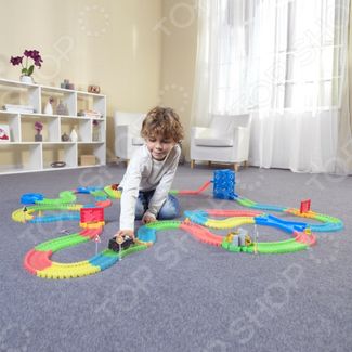 МЕГА Волшебная Трасса Top Shop Magic Tracks Веселые столкновения потрясающий гоночный трек, который принимает любую форму и светится в темноте! Гоночная трасса состоит из 200 деталей четырех разных цветов, которые вы можете сочетать как угодно! У вас есть уникальная возможность создать гибкую трассу-конструктор абсолютно любой формы и менять ее дизайн по вашему настроению. МЕГА Волшебная Трасса Top Shop Magic Tracks Веселые столкновения это улучшенная версия оригинальной Волшебной Трассы Top Shop Magic Tracks. Трасса стала больше и интереснее. В набор добавлены 1 машинка, 1 каменная стена, 1 кирпичная стена, 1 перекресток, 6 дорожных знаков и 4 дорожных конуса теперь есть все необходимое, чтобы устроить зрелищные гонки со столкновением машинок. Мы не сомневаемся, что ваш ребенок будет в восторге. C Magic Tracks можно играть даже в темноте. Благодаря светодиодным фарам машинки, гонки превращаются в настоящее шоу, наполняя комнату великолепными, сказочными, яркими огнями и создавая незабываемую атмосферу азарта и радости! Теперь у вас появилась возможность устроить столкновения для машинок при помощи специальной детали в виде перекрестка. Просто прикрепите ее к любому участку трека. Каменные и кирпичные стены можно расставить в качестве препятствий, с которыми будут сталкиваться машинки. Светящаяся волшебная трасса Magic Tracks подходит для детей, а также взрослых, которые в душе остаются детьми. Это настоящее развлечение для всей семьи! Части быстро и с легкостью соединяются в настоящую гоночную трассу, изгибаются и гнутся. Используйте все максимальные возможности этой игры. В комплекте: 200 деталей x Top Shop Magic Tracks 3 м . 2 светодиодные машинки. Кирпичная стена. Каменная стена. Перекресток. 6 дорожных знаков. 4 дорожных конуса. Набор наклеек. Инструкция. None Возможен самовывоз. Есть доставка.