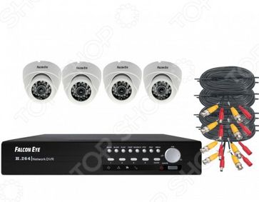 Комплект видеонаблюдения FALCON EYE FE-104MHD KIT Дом современный комплект для видеонаблюдения начального уровня, который позволяет самостоятельно установить надежную систему безопасности у вас дома. Система проста в монтаже, что делает ее еще более доступной для пользователей, не обладающих специальными знаниями. Комплект, состоящий из 4 купольных камер и четырехканального видеорегистратора, удовлетворяет самые строгие критерии оценки систем безопасности для дома офиса или дачи. Широкие функциональные возможности Камеры построены на основе CMOS матрицы с разрешением 1.4 Мп. Устройства также оснащены широкоугольным объективом с фокусным расстоянием 3,6 мм и способны записывать HD-видео с разрешением 1280х720 пикселей. Таких характеристик вполне достаточно для обеспечения высокого качества изображения. В регистраторе воплощены все самые передовые технологии для систем AHD видеонаблюдения. Так, он поддерживает разрешение записи до 1080N, подключение аналоговых и IP-камер, технологию AHD, а также возможность удаленного просмотра видео при помощи беспроводных технологии на мобильных устройствах различных платформ. При необходимости, видеорегистратор позволяет подключить Wi-Fi адаптер для беспроводного подключения к интернету. Такие широкие возможности обеспечивают максимальный комфорт и удобство при использовании данного комплекта. Оцените главные преимущества комплекта Высокое разрешение записи гарантирует прекрасную четкость изображений. Мощная ИК-подсветка, с дальностью до 20 м, позволяет делать записи даже в условиях слабой освещенности. Встроенный ИК-фильтр обеспечивает высокое качество изображение днем и высокую светочувствительность ночью. Режим день ночь включается автоматически, что делает использование устройств еще более комфортным. Встроенный датчик движения позволяет записывать только важные моменты. Бесплатный P2P клиент обеспечивает быстрое подключение и освобождает вас от необходимости проводить нудную и сложную настройку устройства. Достаточно лиш