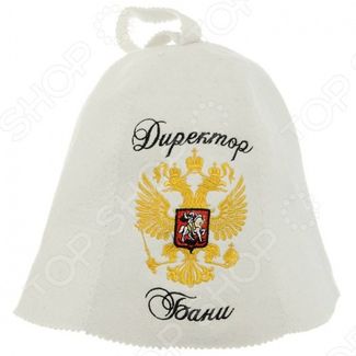 Шапка Банные штучки Директор бани из войлока с вышивкой герба России станет незаменимым аксессуаром для ценителей русской бани и финской сауны. Шапка защитит вас от появления головокружения в бани, ваши волосы от сухости и ломкости, а голову от перегрева. None Возможен самовывоз. Есть доставка.