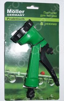 Пистолет для полива Moller M3102 это профессиональный инструмент для полива и орошения садово-огородных участков. Поворотное сопло позволяет регулировать подачу воды от струи до распыления: прямая струя, водная пыль и тд., всего 4 режима. Пистолет можно присоединить к шлангу, а также совместим со всеми элементами аналогичной поливочной системы. Корпус из прочного ABS пластика, поэтому имеет хорошую износостойкость. None Возможен самовывоз. Есть доставка.
