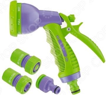 Набор для подключения шланга PALISAD 65177 представлен распылителем и тремя адаптерами. Комплект используется для подсоединения поливочного шланга диаметр 3 4 к общей системе. Распылитель и адаптеры изготовлены из прочного ABS-пластика. Предусмотрена регулируемая форсунка за счет этого пользователю доступно шесть режимов полива: душ, туман, конусная струя, центральная струя, плоско-горизонтальная струя, жесткая струя. Изделие оснащено фиксатором курка для непрерывной работы. Представленный в комплекте быстросъемный соединитель для шлангов диаметром 3 4 позволяет быстро и многократно подсоединять отсоединять шланг к системе полива через адаптер-переходник. Также имеется соединитель с функцией автостопа при отсоединении распылителя от шланга подача воды автоматически прекращается и возобновляется при повторном соединении. Адаптер с внутренней резьбой накручивается на магистральный отвод водопровода соответствующего диаметра. None Возможен самовывоз. Есть доставка.