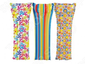 Товар продается в ассортименте. Возможные варианты цвета: гавайские цветы, цветные полосы, радужные пятна. Цвет изделия при комплектации заказа зависит от наличия цветового ассортимента товара на складе. Яркий и летний пляжный матрас Intex 59711NP с жизнерадостной расцветкой идеально подходит для различных водных игр. Имеет удобный подголовник. Размеры матраса: 183 х 69 см. В набор входит ремкомплект. None Возможен самовывоз. Есть доставка.