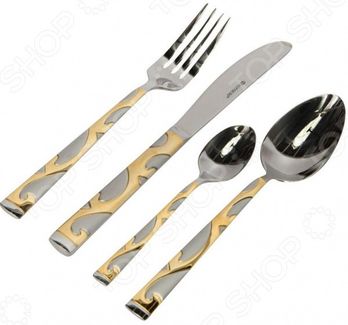 Набор столовых приборов Hoffburg Граф станет настоящей изюминкой в сервировке торжественного стола. Комплект отличается не только своей изысканностью, но и высокой надежностью, поскольку выполнен из качественной нержавеющей стали марки 18 10. Материал устойчив к окислению, не вступает в реакцию с продуктами питания, поэтому не влияет на изменение их вкусовых качеств. Рукоять приборов декорирована золотистой фигурной штамповкой. Изысканный дизайн. Тщательный подбор материалов гарантирует высокое качество и шикарный вид всех элементов набора. Продукция сертифицирована в соответствии со строгими стандартами качества. Она экологична и безопасна в эксплуатации. Будьте уверены, что приборы не оставят никаких микрочастиц в вашей еде. Набор вне моды и времени благодаря своему утонченному оформлению. Компактная подарочная упаковка, в которой комплект удобно хранить. Выбирайте только самое лучшее, приобретая памятный подарок. Возможно, он станет фамильной ценностью, передаваемой детям и внукам. Набор включает 24 предмета: 6 столовых вилок; 6 столовых ложек; 6 столовых ножей; 6 чайных ложек. None Возможен самовывоз. Есть доставка.