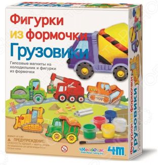 Фигурки из формочки 4M Грузовики это уникальный комплект из гипсовых формочек, с помощью которых можно смоделировать интересные вещи, которые можно сохранить на полке или подарить близкому человеку - маме, папе, сестре, другу. Отличный набор, который сможет открыть для вашего ребенка мир искусства и фантазии. Подробную информацию можно посмотреть в инструкции, там детально описан весь процесс подготовки к моделированию. None Возможен самовывоз. Есть доставка.