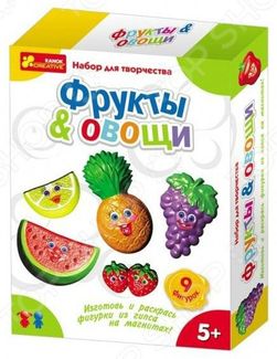 Набор для создания магнитов из гипса Ранок Фрукты и Овощи станет замечательным подарком для вашего любознательного ребенка. В комплект входит все необходимое, чтобы юный творец смог создать забавные фигурки овощей и фруктов своими руками. После того, как работа закончена, фигурки-магниты можно повесить на холодильник или любую другую металлическую поверхность. Набор для создания магнитов из гипса Ранок Фрукты и Овощи поможет развить воображение, зрительную координацию, глазомер, тактильное восприятие и мелкую моторику рук ребенка. Кроме того, такие магниты станут отличным дополнением его комнаты или оригинальным подарком для мамы с папой. None Возможен самовывоз. Есть доставка.