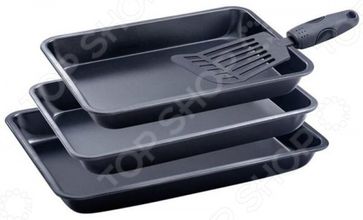 Как известно, блюда, приготовленные в духовке, не только вкусны, но и безвредны для организма. При запекании количество масла или жира можно снизить до минимума. Это не только убережет вашу печень и поджелудочную от нагрузок, но и сохранит стройность фигуры. Для этого необходим лишь качественный противень. А еще лучше комплект. Идеальным вариантом для любой кухни станет набор для выпечки Wellberg WB-1472. Что же можно приготовить, имея в арсенале этот замечательный комплект На самом деле, все, что угодно: кондитерские изделия печенье, кексы, торты; мясо, рыбу или птицу; овощи гриль или вяленые; запеканку и пр. Список можно продолжать бесконечно. Все зависит лишь от имеющихся ингредиентов и ваших пожеланий. А комплект противней поможет воплотить в реальность любой понравившийся рецепт. Готовьте с удовольствием Формы можно использовать как для размещения ингредиентов, так и в качестве подставок для другой посуды, в которой вам удобно запекать. Вы легко можете поместить в духовой шкаф сразу несколько противней, тогда процесс готовки ускорится. Высокие бортики играют роль рукояток и не дают содержимому выпасть. Противопригарное покрытие препятствует пригоранию блюда, обеспечивает равномерный нагрев и значительно облегчает очищение изделий. Формы разного размера хранить их можно по принципу матрешки . Изделия займут минимум места в духовом шкафу. В комплекте представлена широкая лопатка из нейлона. Жаропрочный материал идеально подходит для аккуратного извлечения блюд из форм и их сервировки. Есть отверстие для подвеса. Габариты форм 28,3х19,3х3,5 см, 31,5х21,5х4 см, 34,5х24,5х4 см. Высокое качество исполнения Немаловажное достоинство углеродистая сталь, из которой изготовлены формы Wellberg. Этот сплав идеально подходит для взаимодействия с пищей. Сталь не подвергается коррозии, устойчива к воздействию агрессивных веществ и механическим повреждениям. Обладает высокими показателями прочности и износоустойчивости. Легко очищается от загрязнений обычным раст