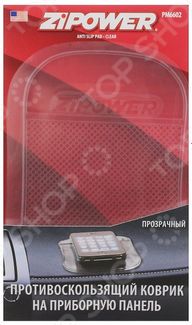 Противоскользящий коврик Zipower PM 6602 на приборную панель. Такое приспособление обязательно пригодится многим автовладельцам. С его помощью можно удобно разместить самые разные предметы: телефон, документы, ключи и пр. Надежное сцепление препятствует соскальзыванию вещей при изменении скорости или траектории движения авто. Коврик для салона авто Zipower Выполнен из высококачественного прозрачного полиуретана материал прочный и износоустойчивый, не требователен в эксплуатации. Легкая и быстрая установка без использования клеящих средств. Изделие хорошо сцепляется с любой поверхностью благодаря особому нано-покрытию, которое формирует вакуум. Не оставляет следов на приборной панели. Благодаря прозрачному исполнению коврик не будет заметен на поверхности приборной панели. Отлично удерживает предметы. Не собирает на себе пыль и грязь, легко очищается, не теряя своих основных свойств можно промывать под проточной водой . Поверхность коврика устойчива к воздействию УФ-лучей и высоким температурам. Не содержит токсичных компонентов. Оптимальный размер 15,5х10 см. None Возможен самовывоз. Есть доставка.