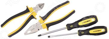 Набор слесарно-монтажного инструмента Stayer Master Hercules 22027-H4 станет отличным дополнением к комплекту ваших слесарных инструментов и пригодится при проведении различных ремонтных и монтажных работ. В набор входят плоскогубцы, бокорезы, шлицевая и крестовая отвертки. Изделия выполнены из высококачественной углеродистой стали и снабжены, предотвращающим коррозию, хромированным покрытием. Рукоятки инструментов изготовлены из пластика. None Возможен самовывоз. Есть доставка.