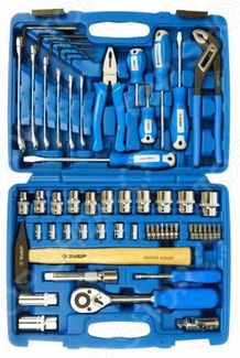 Набор инструмента Зубр Эксперт 27670-H58 отлично подойдет для монтажных, ремонтных, слесарных и прочих видов работ. Оптимальная комплектация и проверенное временем качество инструмента удовлетворит потребности не только любителя при обслуживании личной техники, но и профессионала на производстве. Торцевые головки обеспечивают максимальный крутящий момент по отношению к резьбе и выдерживают интенсивные нагрузки. В наборе 6 головок с посадочным размером 1 4 и величиной от 8 до 13 мм. Дополнительно, имеются 11 головок SUPER-LOCK с посадочным размером 1 2 . Кроме того, в наборе имеются биты, отвертки, ключи комбинированные, молоток, клещи переставные, плоскогубцы и пр. Все инструменты выполнены из хромованадиевой стали с хромированным покрытием и станут вам верными помощниками при выполнении поставленных задач. None Возможен самовывоз. Есть доставка.