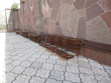 Плетеный забор (плетень). Прут прошел термическую обработку и приобрел приятный коричневый цвет.