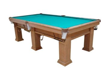 Бильярдный стол Рекс выполнен из комбинации МДФ со шпоном красного дерева и предназначен для домашнего использования. В основании игрового поля — сланец Ардезия. Все комплектующие стола только европейского производства, сукно Volunteer (Китай). Латунная луза с кожанной пелериной укомплектована классической текстильной сеткой. Усовершенствованный тип прочного крепления ног к раме стола. Цена: 12ф.- 101000р.; 10ф.-85500р.; 9ф.-75000р.