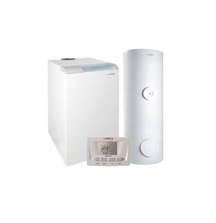 МЕДВЕДЬ 30 KLOM17Напольный чугунный газовый котел, 26 кВтFE 150/6 BMНапольный цилиндрический бойлер косвенного нагрева горячей воды, 144 литраTHERMOLINK P (eBUS)Комнатный регулятор температурыДатчик наружной температурыКомплект для соединения бойлера и котлаТип: Напольный, газовый
