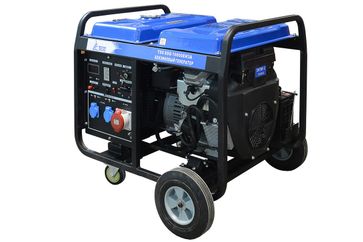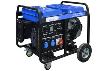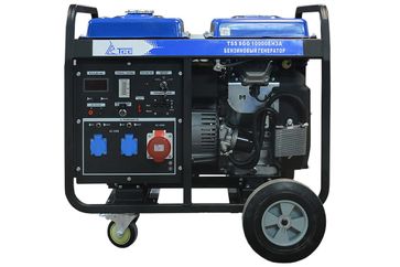 Бензогенератор с электростартом и с разъемом для подключения блока автоматики трехфазный 10 квт TSS SGG 10000 EН3A предназначен для выработки электроэнергии с основными характеристиками: напряжение 220-380 вольт, частота 50 Гц и номинальной мощностью 10 кВт, оснащенный колесным комплектом и ручками, для удобства передвижения. ОБЛАСТЬ ПРИМЕНЕНИЯ: Трехфазный бензиновый генератор с мощностью 11 кВт не только отлично справится с созданием резервного электропитания в случаях отключения электроэнергии, но и гарантирует стабильную работу в качестве главного источника питания, при условии необходимости подключения трехфазных 380 В потребителей.Российский трехфазный бензогенератор может применяться в автосервисе, строительстве, аварийными службами, а так же на предприятиях малого бизнеса, для подключения бытовых приборов или строительного инструмента. К примеру, в автосервисе можно подключить трехфазный компрессор для работы автоподъемников, в моменты отключения электроэнергии.Электрогенератор бензиновый работает на бензине АИ-92. Рекомендуемое к эксплуатации масло SAE 10W30. Необходимо учитывать, что схема соединения Звезда используемая в трехфазном бензогенераторе ТСС, позволяет, при подключении нагрузки к однофазному разъему 220В, получить полезную снимаемую мощность всего 3,3 кВт. ОСОБЕННОСТИ КОНСТРУКЦИИ: