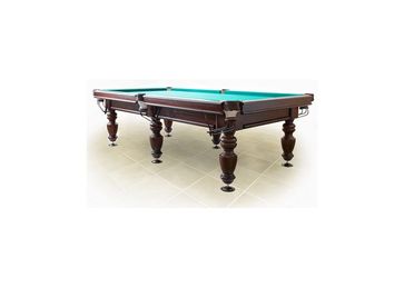 Рама и ножки стола изготовлены из переклеенных брусковхвойных пород дерева, что обеспечивает прекрасную жесткость и отличнуюустойчивость к перепадам температур. Каждая из ножек крепится к боковой частирамы (царге) двумя болтами, которые не позволяют каркасу стола расшатываться впроцессе эксплуатации. В ножках стола установлены металлические домкратыс болтом увеличенного сечения и длинной втулкой, позволяющие регулировать высотубортов в более широком диапазоне. Борта изготовлены из массива твердыхпород дерева (дуб), бортовая резина DBO Speedball, цвет – махагон, классический дизайн. Цена- поле ардезия: 10ф.-78500р.; 9ф.-70 000р.; 8ф.-62500р. поле ЛДСП: 10ф.-61 000р.;9ф.-59 000р.; 8ф.-54 000р.