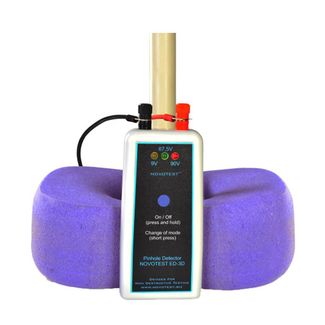 Электролитический дефектоскоп (дефектоскоп покрытий) NOVOTEST ЭД-3Д используется для неразрушающего оперативного контроля сплошности различных покрытий с толщиной до 500 мкм по стандарту ASTM G62-A. С помощью этого универсального дефектоскопа можно контролировать структуру покрытия, используя три стандартных вида напряжения - 9В; 67,5В; 90В. Без сомнения, это делает данный прибор действительно универсальным инструментом для контроля пористости различных лакокрасочных покрытий. Стоит отметить, что дефектоскоп контролирует пористость, непрокрашенные места и другие нарушения сплошности различных защитных диэлектрических покрытий изделий из металла. Это происходит благодаря приложению низковольтного напряжения к покрытию через губку, которая смочена в жидком электролите с отличными проникающими характеристиками. Преимущества электролитического дефектоскопа (дефектоскопа покрытий) NOVOTEST ЭД-3Д: