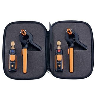 Комплект для холодильных систем Testo (Refrigeration set) представляет собой набор компактных интеллектуальных инструментов от компании Testo AG, применяемый в пуско-наладочных и диагностических работах, а также в сервисном обслуживании стационарной и мобильной климатической техники, холодильных и морозильных агрегатов, тепловых насосов и т.п. Комплект создан на основе беспроводных смарт-зондов, управляемых дистанционно и передающих результаты измерений через Bluetooth на смартфон/планшет с ПО Testo Smart Probes. В состав набора включены: