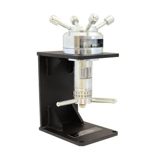 Прижимной поворотный механизм, предназначенный для надежной фиксации исследуемого образца металла или покрытия. Вращение механизма выполняется при помощи расположенных по периметру четырех рычагов; Устройство считывания глубины, на которую пуансон был вдавлен в испытуемый образец до нарушения его целостности. Считывание показаний ведется по двум шкалам – круговой и вертикальной.