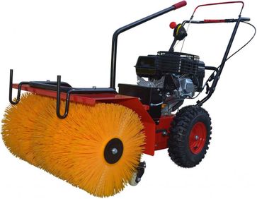 Четырехтактный двигатель Loncin G160F максимальной мощностью 5.5 л.с. при оборотах 3600 об/мин Угол поворота и степень нажима щетки всегда можно отрегулировать, выбрав одно из 3 положений: влево, вправо и по центру. Выбор положения зависит от того, насколько загрязнена территория. 4 передачи вперед / 2 назад. Также оператор всегда может подобрать наиболее оптимальную скорость передвижения машины. Всего на этом инструменте есть 4 разные скорости. Разблокировка колес. Эта модель уборочной машины отличается очень высокой маневренностью и может справляться с уборкой даже труднодоступных мест и узких проходов. Такая манёвренность обеспечивается за счет наличия на колесах шплинтов. Во время разблокировки шплинт отсоединяет ступицу колеса от ведущего вала и колеса агрегата очень быстро поворачиваются в нужную сторону. Металлическая рама. Подметальная машина оснащена металлической рамой, которая обеспечивает конструкции жесткость и долговечность. Большой топливный бак. На инструменте установлен топливный бак на 3,6 литра, объема которого вполне хватает для того, чтобы работать много часов без дозаправок. Щётка из пропилена с высокой щетиной. За один проход машина убирает полосу шириной в 62 см, диаметр щетки составляет 42 см. Небольшой вес. Эта модель подметальной машины весит относительно немного – 75 кг. Тип двигателя: бензиновый Мощность (л.с.): 5.5 Мощность (кВт):