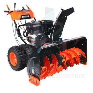 Самый мощный снегоуборщик с рекордной шириной захвата в 107см, позволяет очищать пешеходную дорожку за один проход, а проезд для легкового автомобиля всего за два прохода. Сдвоенные колеса обеспечат отличное сцепление с грунтом при максимальной глубине выпавшего снега. Функция free hand control позволяет разворачивать снегоуборщик практически на месте. В конструкции снегоуборщика используются только подшипники, а не втулки. Шестерня редуктора шнека выполнена из бронзы, что в десятки раз увеличивает ресурс снегоуборщика. На заводе производится регулировка и обкатка каждой единицы техники в собранном состоянии. Этому снегоуборщику под силу работа на очень больших площадях, например, на стадионах.Мощность двигателя : 14.0 л.с. Стартер: электро 220V Фара: + Обогрев ручек : + Скорость: 6 вперед / 2 назад Тип колес: сдвоенные колеса с агрессивным протектором Функция разворота: free hand control Ширина ковша: 107 см Высота снежного покрова: 55 см Направление выброса снега : 190 градусов Угол выброса снега : 70 градусов Габариты упаковки: 110х117х88см Вес : 163 кг