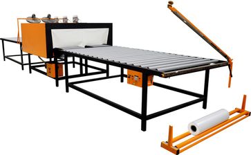 Термоупаковочная машина ТМ-7Р М1 (ручная) предназначена для упаковки длинномерных изделий, к числу которых относятся различного вида пиломатериалы: доска, двери, короба, и т.п. в термоусадочную полиэтиленовую пленку. Тип машины: Ручная Тип пленки: Полиэтилен (ПЭ) Состав машины: