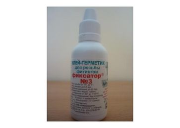 Фиксатор №3 – анаэробный клей-герметик. Не содержит летучих растворителей. Предназначен для фиксации и герметизации резьбовых соединений фитингов трубопроводов, испытывающих умеренные вибрационные нагрузки. Защищает резьбу от ослабления и всех видов коррозии. Применяется в системах горячего и холодного водоснабжения, отопления, газоснабжения, подачи сжатого воздуха, гидравлических жидкостей. Отверждается в резьбовых зазорах с образованием термореактивного полимера.
