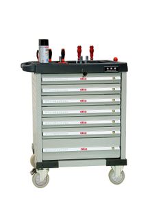 Инструментальная тележка имеет внутри себя ряд удобных полочек, за счёт этого можно разложить инструменты в нужном порядке, хранить в тележке можно любые инструменты. Существуют разнообразные комплектации инструментальных тележек, они могут иметь два и более колеса, могут быть оснащены педальными тормозами, могут насчитывать разное количество полочек, а могут иметь вид ящика, то есть без полок. Тележку для инструментов можно использовать для перевозки инструментов среднего размера, для транспортировки заготовок и крупных инструментов. None Есть доставка.