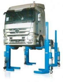Подкатные колонны предназначены для подъема грузовых автомобилей, автобусов, карьерной техники за колеса. При использовании колесных адаптеров возможно осуществление подъема легковых автмобилей.Универсальное решение для грузовых СТО и обслуживанию спецтехники - как для работы внутри СТО так и снаружи помещения - подъемники имеют высшую степень защиты по электробезопасности IP65 для работы на улице.• Модельный ряд колонных подъемников RAV 297 - 298:• Мобильные электрогидравлические колонны на выбор по грузоподъемности : 7,5 и 8,5 т на 1 колонну• Мы предложили наиболее стандартную конфигурацию подъемников в комплекте из 4 колонн.• Гибкий модульный конструктив колонных подъемников - можно составить комплект из 6 и 8 колонн.Особенности подъемников• Мобильные колонны достаточно компактны и не требуют определенного места, подготовки фундаментов.• Подъемники имеют высшую степень защиты по электробезопасности IP65 для работы вне помещения.• Модульная система позволяет составлять различные конфигурации из 4, 6 и 8 колонн, например 2 комплекта по 4 колонны и др.• В комплекте есть основная колонна с полным пультом управления и вспомогательные колонны, имеющие кнопки подъема-опускания и аварийный стоп.• Упраляются все колонны синхронизированно - программируемый электронный контроллер с функцией самодиагностики.• Возможна одновременная работа всех колонн, управление по паре колонн и индивидуальное независимое управление одной колонной.• Есть возможность установки разницы уровней подъема в паре колонн и последующая синхронизация подъема-опускания с сохранением разницы.• Конроллер самостоятельно выбирает последовательность фаз основного источника питания.Гидропривод колонных подъемников и система безопасности• В этих моделях подъемников используется современный и надежный электрогидравлический привод. • Аварийный стоп в случае износа или поломки элементов.• Тепловая защита двигателей.• На всех колоннах - безопасное низковольтное 24 В управление.• Продуманная система блокировок без