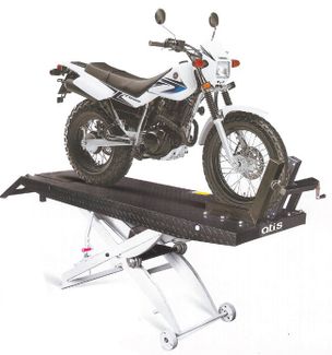 Передвижной подъемник для мототранспорта; Пневматическое управление подъемом; Съемная центральная пластина для демонтажа заднего колеса.