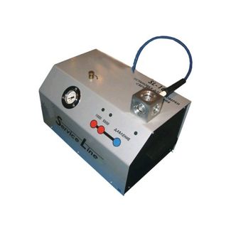 Прибор для проверки свечей зажигания, оснащен встроенным компрессором и питается от бортовой сети автомобиля 12В. Имеет два режима работы проверки свечей: на холостом ходу при 1000 оборотов и при 5.000 оборотов. Развивает давление до 10 атм! Имеет небольшие габариты. Установка SL-100 предназначена для профессионального применения в условиях станций технического обслуживания автомобилей. С помощью данного прибора проверяются свечи зажигания легковых автомобилей на пробой изолятора, правильное искрообразование. Проверка свечей осуществляется в условиях приближенных к рабочим, т.е. под давлением не менее 10 бар и в режимах искрообразования соответствующих 1000 обмин и 5000 обмин.Установите на резьбовую часть свечи зажигания уплотнительное резиновое кольцоВверните свечу в специальное отверстие на проверочной камере Убедитесь, что сбросник давления находится в положении «ЗАКРЫТО» Если необходимо, разверните свечные электроды напротив смотрового окна камеры, поворачивая в нужную сторону фланец камеры ключом №24Подсоедините «крокодилы» кабеля питания к аккумулятору – красный к плюсовой клемме, а черный на «массу». Включите тумблер питания установки. Кратковременно нажмите кнопку ДАВЛЕНИЕ, создав в проверочной камере давление 2-3 бара Убедитесь, что соединение свечи и проверочной камеры герметично. В противном случае, удерживая фланец камеры ключом №24, подтяните резьбовое соединение камеры и свечи свечным ключом до устранения утечек. Подсоедините к свече высоковольтный провод установки Нажмите и удерживайте кнопку ДАВЛЕНИЕ. При достижении давления 10-11 бар внутренний компрессор установки автоматически отключится. Нажмите и удерживайте кнопку 1000. Наблюдайте, правильно ли происходит процесс искрообразования в режиме холостого хода Нажмите и удерживайте кнопку 5000. Наблюдайте, правильно ли происходит процесс искрообразования в режиме максимальных оборотов Время включения режимов 1000 и 5000 не более 15-20 сек. Стравите давление в камере, повернув сбросник давления в пол