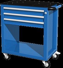 Направляющие на развёрнутом подшипнике Диаметр колёс 100 мм. Центральный замок на ящики EurolockБоковая панель с резьбовыми втулками для крепления опцийБензо-маслостойкий коврик на верх тележкиПорошковая окраска корпуса и ящиковДопустимая распределенная нагрузка на тележку, кг : 200 Допустимая распределенная нагрузка на ящик, кг : 20 Количество ящиков, шт : 3 Габаритные размеры (ШхГхВ), мм : 759х451х828 Масса, кг : 32 None Страна производства: Россия Есть доставка.