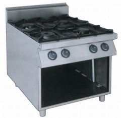 Профессиональная газовая плита 700-й серии, производства KOGAST (Словения) модель PS-T47/P, является одним из важнейших устройств оснащения горячих цехов для приготовления различных блюд в наплитной посуде. Данная модель станет хорошим выбором для предприятий питания средних размеров (заведения фаст-фуда, большинство ресторанов и кафе на 80–120 посадочных мест). Варочная поверхность газовой плиты PS-T47/P имеет четыре круглых атмосферных горелок из серого чугуна (крышки эмалированные). Две горелки имеют мощность по 3,5 кВт, две другие - 5,5 и 7 кВт соответственно. Решетки-упоры, устанавливаемые над горелками для размещения кухонной посуды, выполнены из чугуна. Такие упоры обеспечивают стабильное размещение массивной посуды, служат источником дополнительной аккумуляции теплового излучения и являются к тому же рассеивателями, обеспечивающими ровное температурное поле в месте горения. Их использование позволяет предотвратить избыточный нагрев пространства внутри плиты и увеличить срок службы всех рабочих элементов. Кроме того вокруг горелок есть специальные вставные поддоны для сбора разлитой жидкости.Электромеханическая панель управления размещена в верхней части плиты под горелками на передней панели. Данное расположение является более удобным для работы поваров (управление - "под рукой"). Для плавного изменения тепловой мощности горелок используются четыре регулятора интенсивности горения раздельно для каждой горелки. Благодаря плавной регулировке нагрева удается более точно подобрать режим приготовления для каждого блюда. Плита оснащена системой газ-контроля., которая представляет собой устройство, автоматически прекращающее подачу газа в горелку, если огонь случайно погаснет или газ изначально не подожгли. Основными элементами системы являются: датчик наличия пламени (термопара) и электромагнитный клапан-отсекатель, перекрывающий газоподводящую трубку. Термопара, установленная около горелки, накаляясь от пламени, генерирует напряжение, с помощью которого