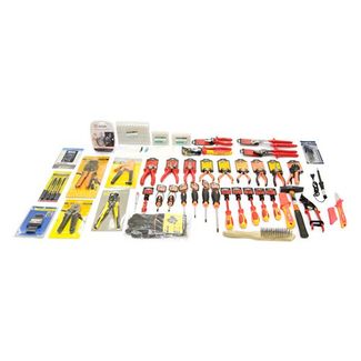 Пассатижи 1000В 160 мм; Пассатижи 1000В 215 мм, усиление 42%; Плоскогубцы 1000В 160 мм; Круглогубцы 160 мм; Кусачки боковые 1000В 160 мм; Переставные клещи 250 мм; Съемник изоляции 160 мм; Кабелерез 1000В 250 мм; Утконосы 160 мм; Ручной зажим струбцина 180 мм; Пассатижи "Мини" 120 мм; Кусачки боковые "Мини" 120 мм; Тонкогубцы "Мини" 120 мм; Тонкогубцы изогнутые "Мини" 120 мм; Отвертка 1000В Sl2,5х75 мм; Отвертка 1000В Sl4.08х100 мм; Отвертка 1000В Sl5.5х125 мм; Отвертка 1000В Sl6.52х150 мм; Отвертка 1000В Ph0х100 мм; Отвертка 1000В Ph1х100 мм; Отвертка 1000В Ph2х150 мм; Отвертка 1000В Ph3х150 мм; Отвертка Sl6.5x45 мм; Отвертка Ph2x45 мм; Отвертка PZ0 60; Отвертка PZ1 80; Отвертка PZ2 100; Отвертка PZ3 150; Молоток слесарный, 400 г, фибергласовая обрезиненная рукоятка//SPARTA, шт; Нож для снятия изоляции с круглого кабеля диам. от 8 до 28 мм; Съемник изоляции СИ-6Н; Паяльник 75 Вт; Отвертка индикаторная; Перчатки ХXL; Пресс-клещи ПК-10У; Фонарь налобный; Браслет магнитный; Цифровой мультиметр; Пресс-клещи ПК-4вт; Ножницы для резки стальной ленты; Устройство для монтажа кабельных стяжек МС-9; Хомуты; Клеммная колодка п/э 124мм (10 шт.); Клеммная колодка п/э 126мм (10 шт.); Клеммная колодка п/э 12*10мм (10 шт.); Изолента; Набор угловых ключей 950 L/9 SM N; Набор STAYER 1603-10-H6_z01 Надфили, ручка из ПВХ, 100мм, 6шт; Кардощетка для зачитски проводов; Сумка монтажника большая;